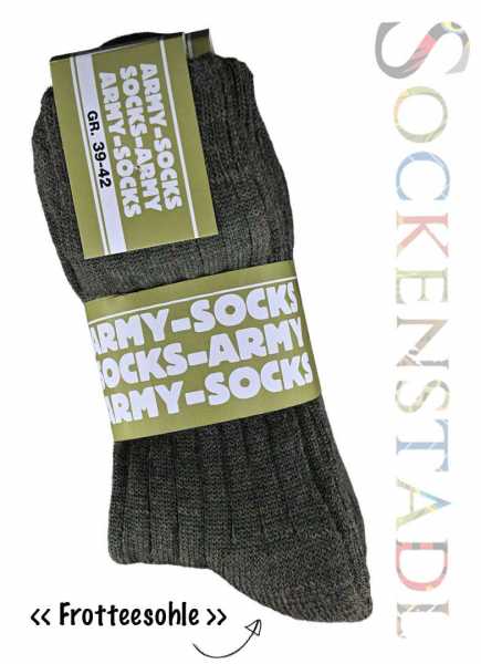 Die Army - Norweger Socken sind längst zu einem Klassiker im Strumpfwarenbereich geworden. Für Ihre nächste Wanderung sind die Militär-Norweger Socken genau das Richtige, damit Ihre Füße warm gehalten werden. Eine vollgriffige Luxus-Qualität erhält der Strumpf durch eine spezielle Vorwäsche. Die Militär-Norweger Socken eignen sich hervorragend als Arbeits-, Wander-, Sport- oder als Trachtensocken.